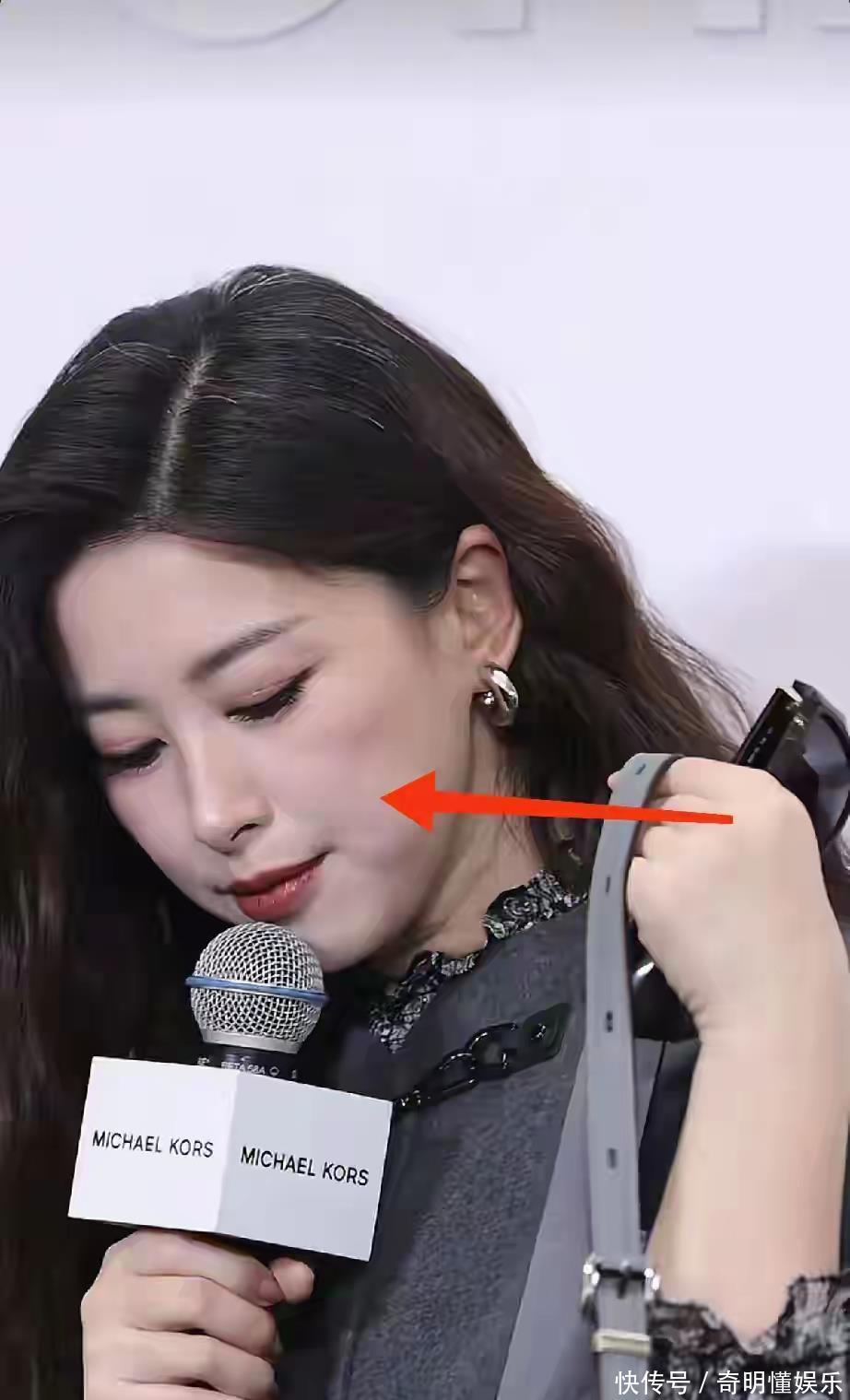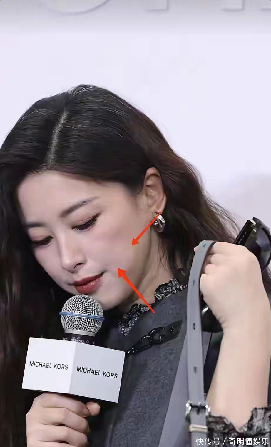 后来又有她在上海参加活动的照片流出来,怼脸拍的生图里,她低头的时候,脖子上的颈纹一条一条的,颜色比脸上深,特别抢镜。