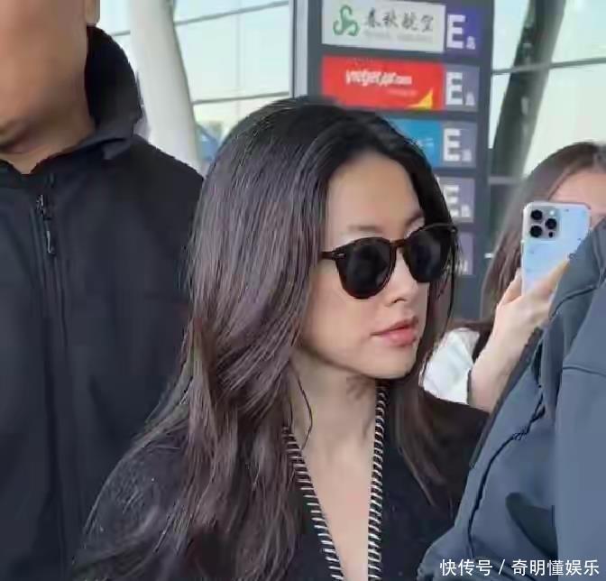 41岁朱珠机场生图曝光,头顶白发成片颈纹明显,没精修照样有韵味
